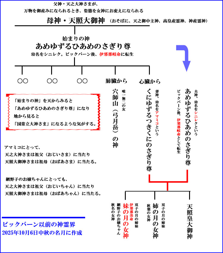 網野子のお嬢ちゃん、秋名の女神、名柄の女神、伊邪那美命の御神霊が確立したことを全大宇宙に知らしめることになっていくだろう。