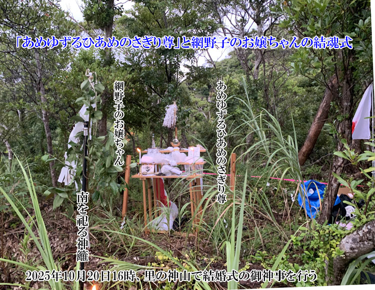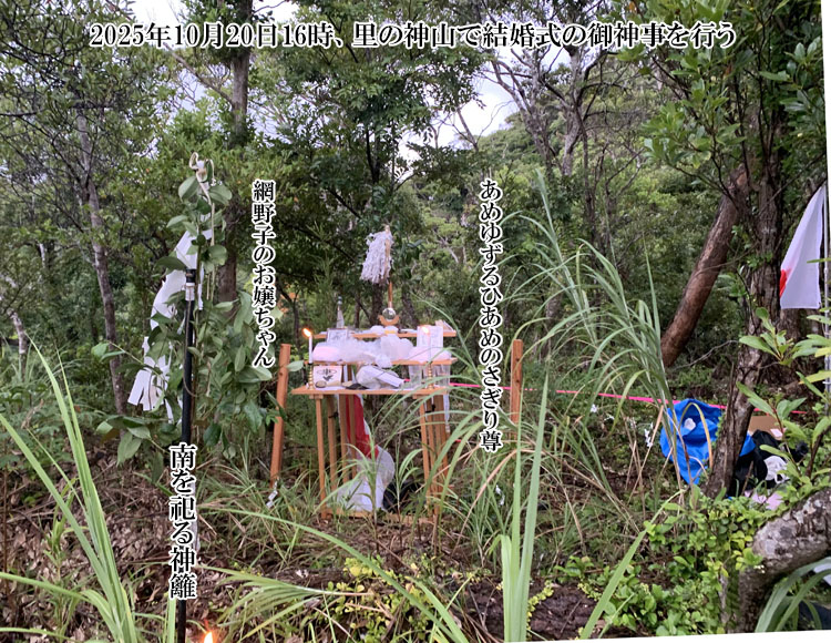 2025年10月20日16時に、里の神山で網野子のお嬢ちゃんを嫁に迎え、