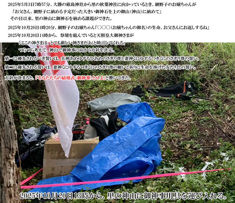 2025年10月20日13時から、里の神山に御神事用具を運び始める