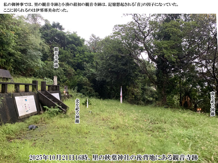 2025年10月20日は、名瀬小湊の最初の観音寺跡と厳島神社の元宮で神籬御神事を行い、御神石を納めた。