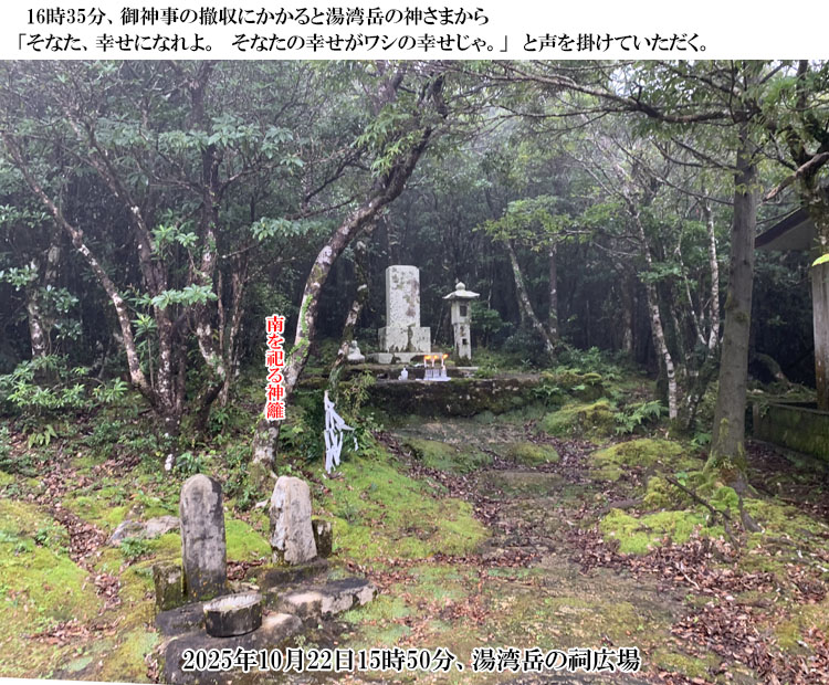 2024年6月21日(夏至)13時40分、湯湾岳の祠広場に御神事用具を運び、準備をしていると、天照皇大御神さまが