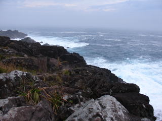 | 【八隻曳(千畳敷)】 E0メートEの岩壁。100メートE眤海、千畳敷とも云EE簇は年輪のように節理を描いていE また御崎(おさき)神社の祭神が八隻の船で上陸したと云う伝説によりその名があE ![]() ![]() ![]() ![]() ![]() |