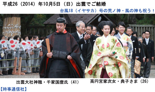 10月5日(日)、出雲で千家国麿氏(41)と典子さん(26)の結婚式