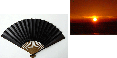 「黄金が湧き上がってくる黒の扇子」の扇子を動かしてみると、上と同じように「日の入り」の太陽の姿だ。